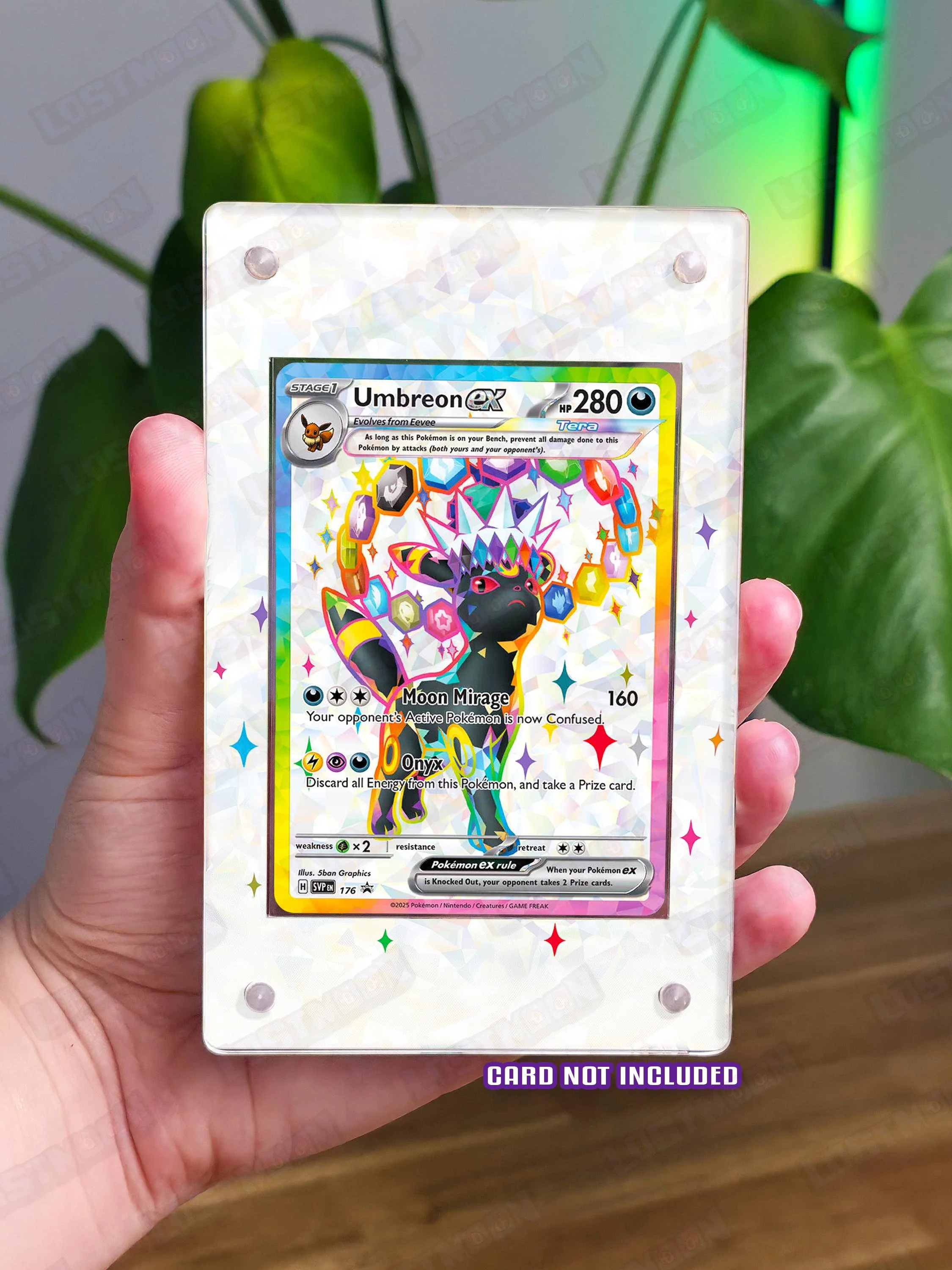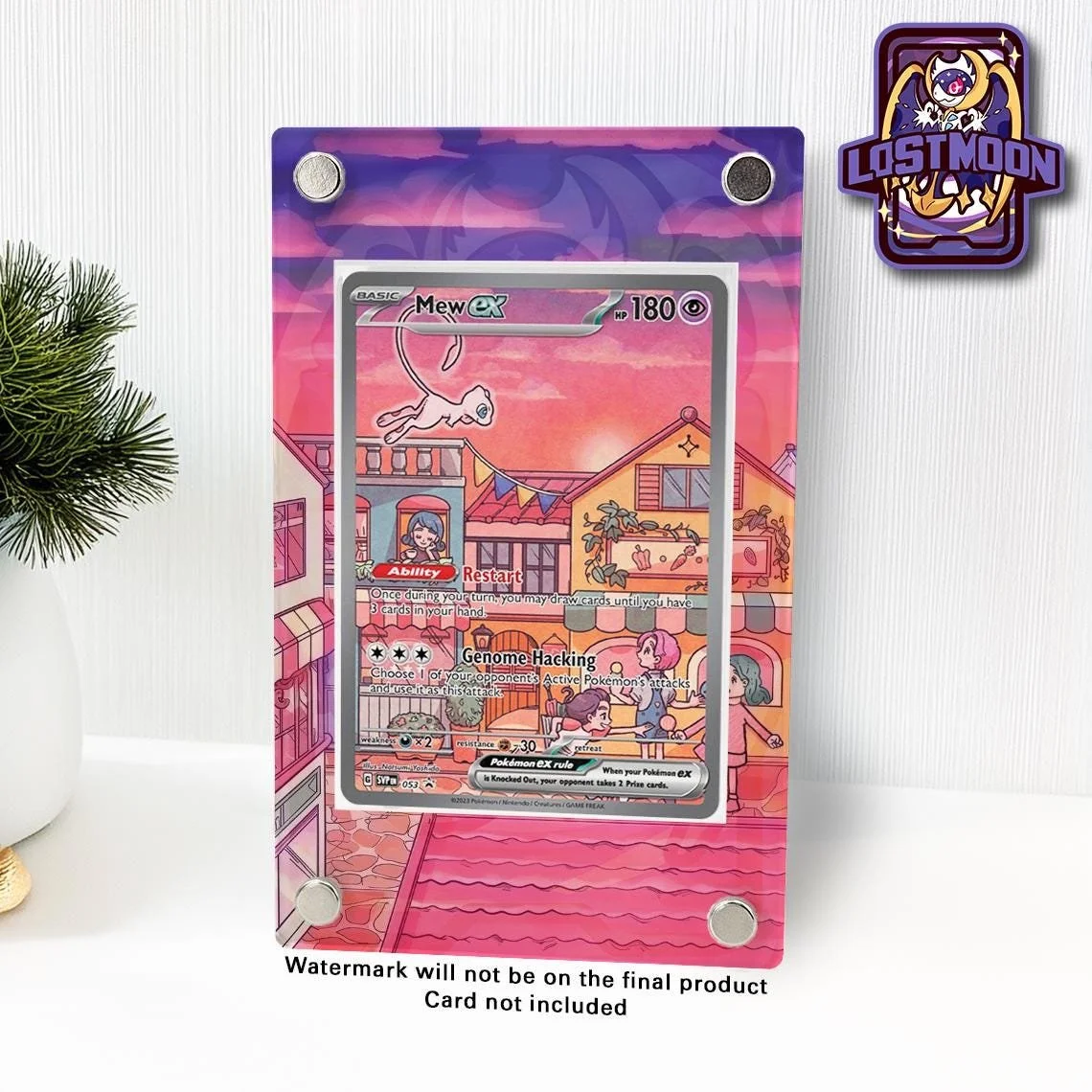 • 🃏 Card not included. This listing is for a custom art insert plus your choice of acrylic stand frame or magnetic acrylic frame